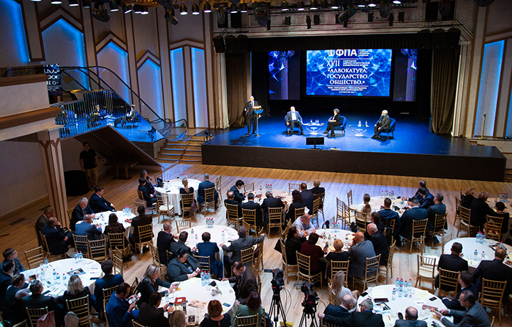 Президент ФПА РФ Юрий Пилипенко открыл вторую часть конференции и предоставил слово первому вице-президенту ФПА РФ, первому вице-президенту АП Московской области Михаилу Толчееву.